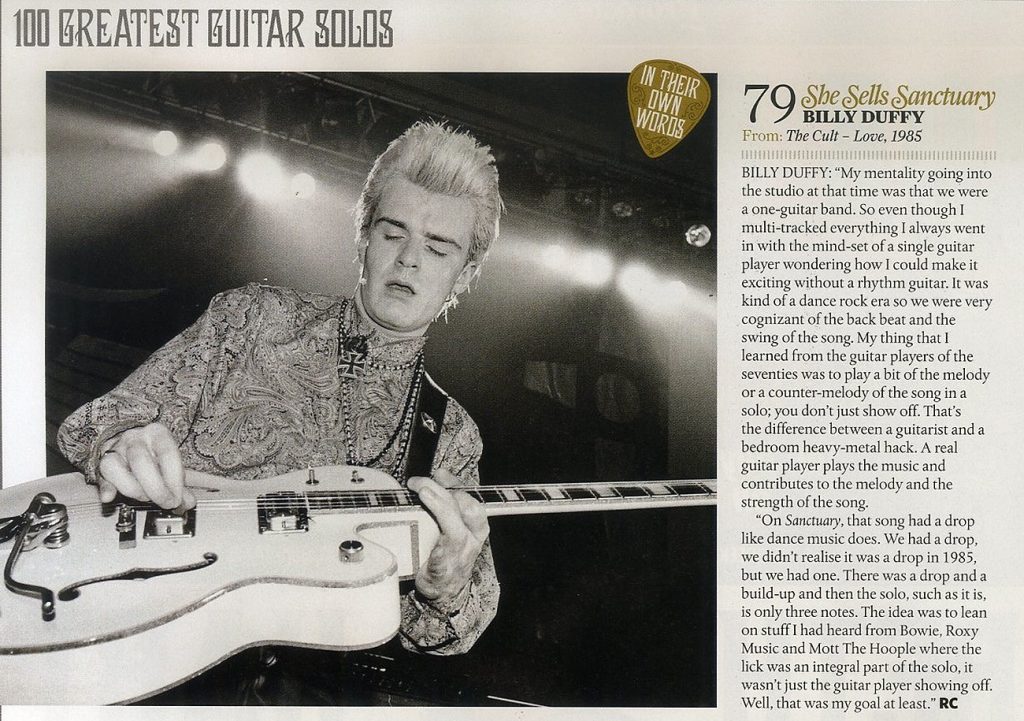 “It was nice to see that “She Sells Sanctuary” appeared in Classic Rock magazine’s Top #100 Greatest guitar solos in 2016.