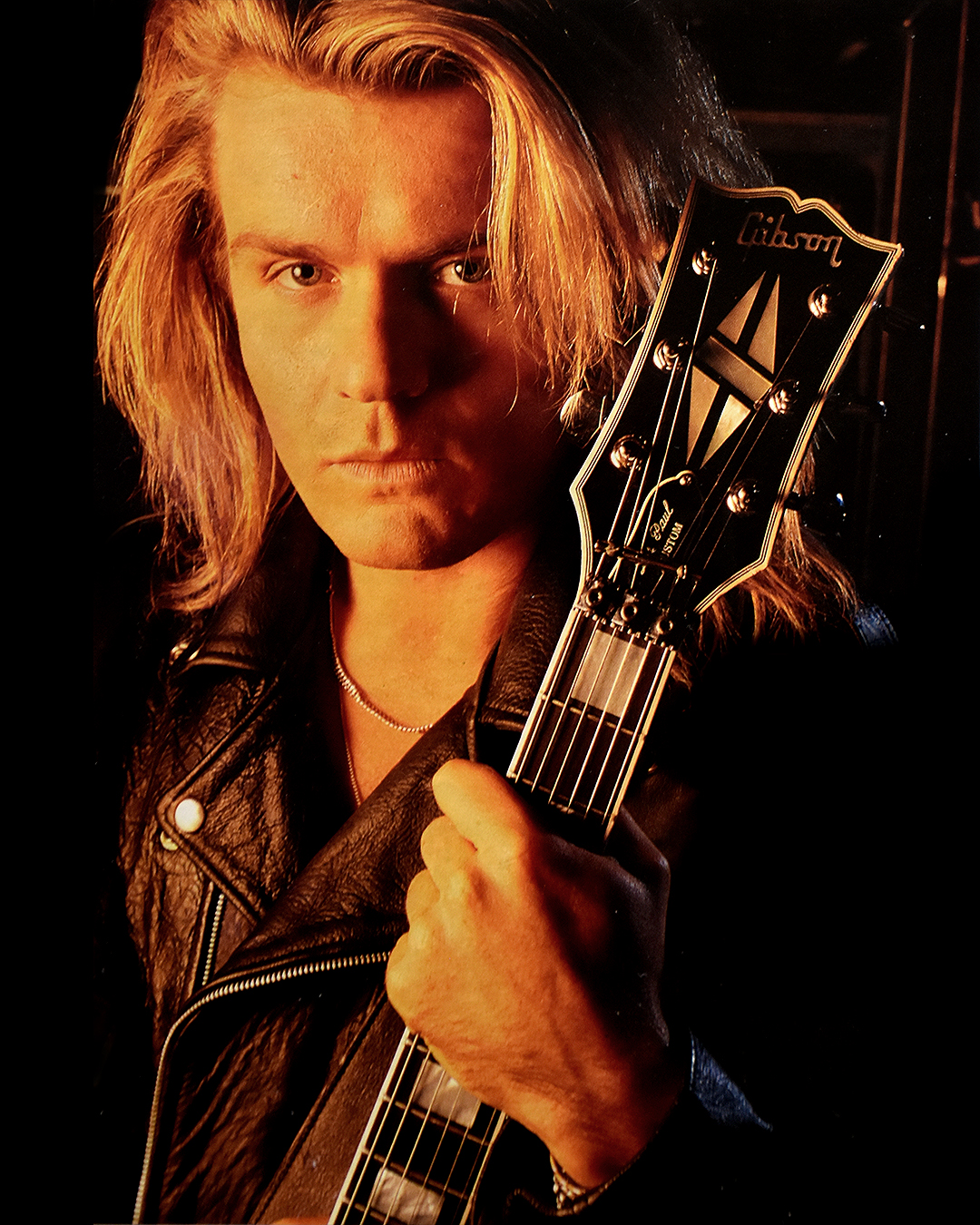 “This pic by Tony Motram appeared in Metal Forces magazine in 1991 and features the Gibson Les Paul that I recorded the “Electric” album with and purchased at the end of the session with Rick Rubin in New York.